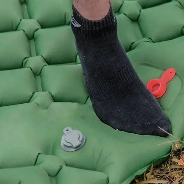 - 💨 Миттєве надування без зусиль: Завдяки вбудованому ножному насосу, ви легко та швидко надуєте каремат за лічені хвилини, не витрачаючи сили та не потребуючи окремого насоса.